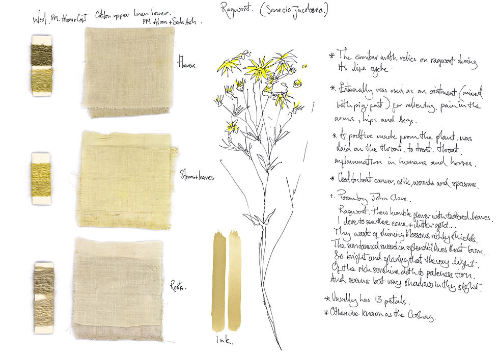 The heart of the project lies in the charts she creates. Each chart features the dyed swatches, a hand-drawn reference of the plant (often in its own ink), and a record of its historical use by humans for medicinal, ceremonial, and spiritual purposes. These charts serve as both a record of her findings and a springboard for a new series of artworks exploring the human-plant relationship.